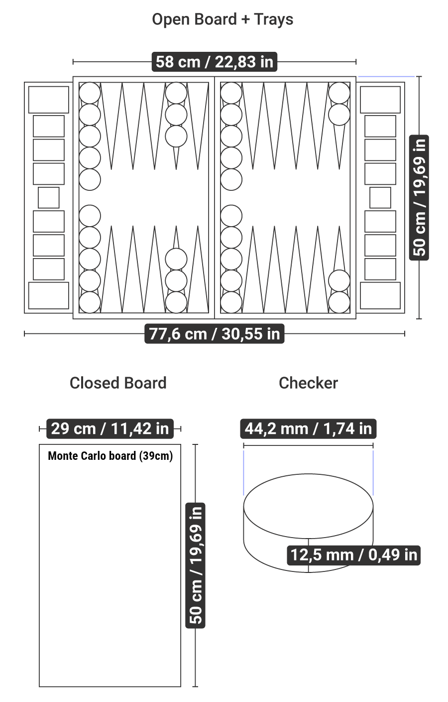 Das Monte-Carlo-Brett verfügt über spielerorientierte Abmessungen und bietet Platz für große Steine, ohne dass die Spielfläche zu unübersichtlich wird.