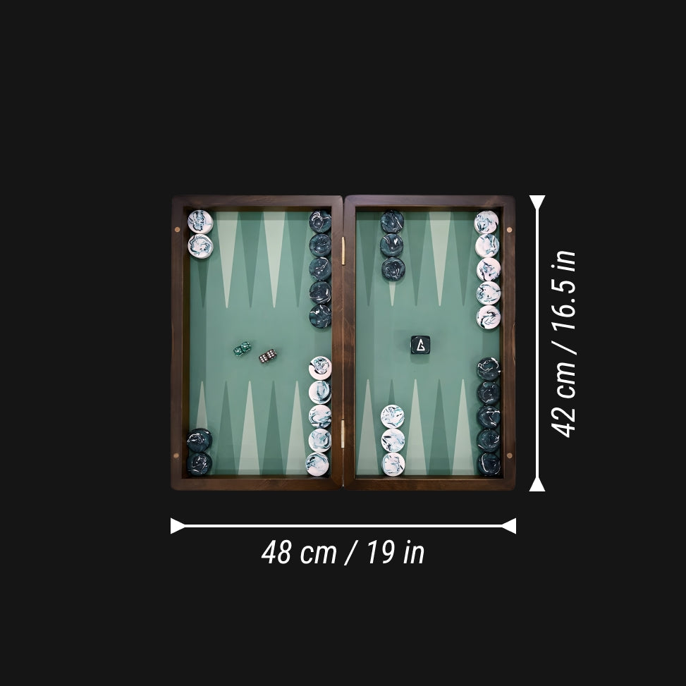 Our Luxury Earth Board has a removable playing surface (MagFit™) for easy cleaning. Use a soft cloth for surfaces and avoid harsh chemicals. For checkers and dice, a gentle wipe will do the trick.